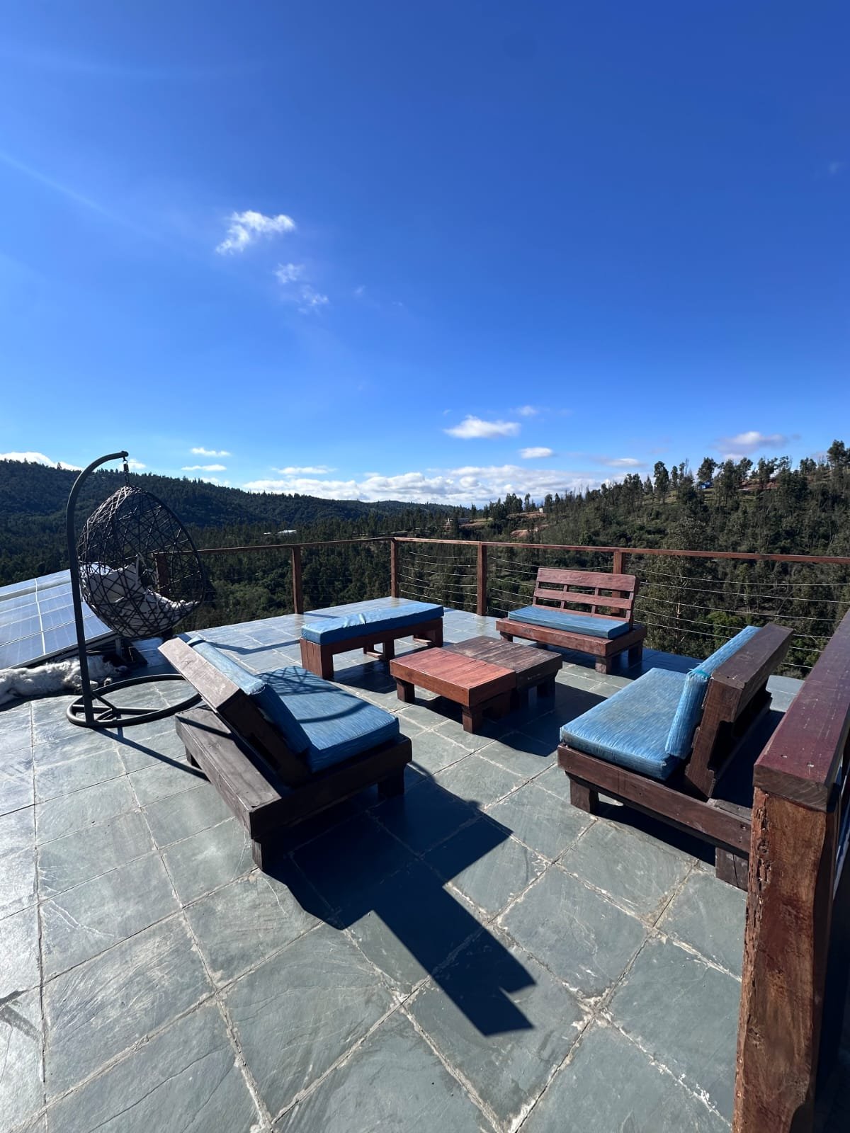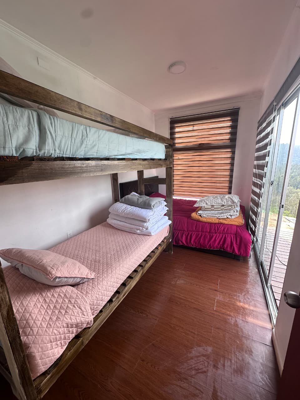 •Segunda Cabaña cuenta con 3 habitaciones, primera habitación con cama de dos plazas, la segunda habitación una litera y la tercera habitación tiene una cama de dos plazas y una litera. 1 baño, 1 parrilla, cocina equipada y 2 terrazas, una en el techo con vista panorámica.